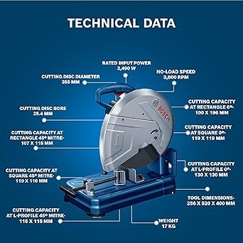 • Industrial-Grade Blade – Equipped with a durable 355 mm saw blade and 25.4 mm bore size, optimized for maximum strength and cutting accuracy.