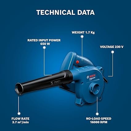 Powerful Cleaning Performance: 650 W motor delivers 3.7 m³/min airflow, efficiently clearing dust, debris, and leaves from small and large areas.