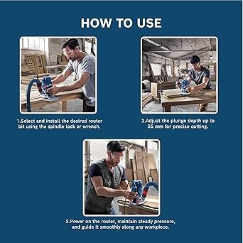 - Versatile & Precise: Supports 6–8 mm bits, with 55 mm plunge depth and 11,000–28,000 RPM for accurate routing.